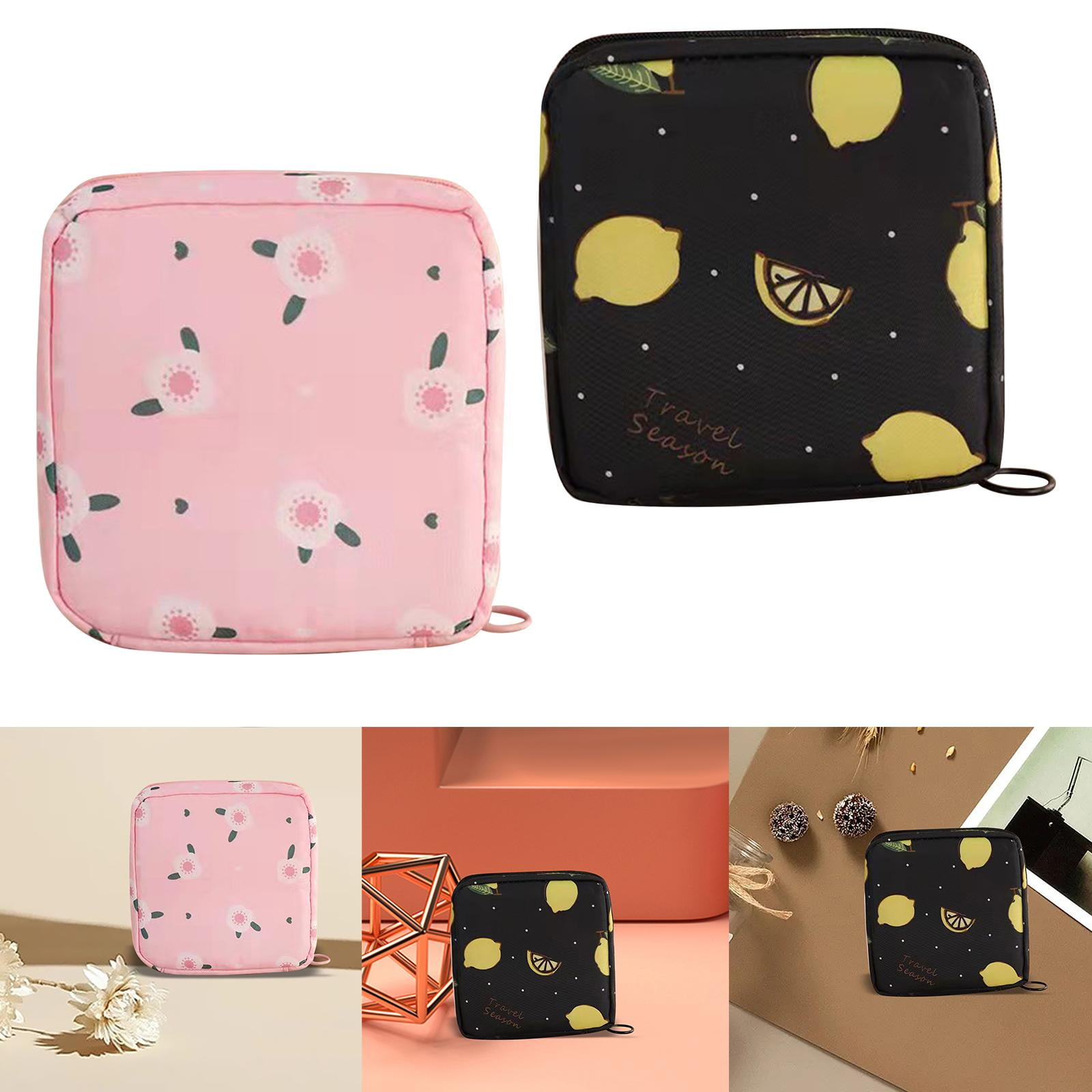 2pcs Multipurpose Napkin Storage Bags Small Menstrual Lovely Compact Makeup Organizer Zipper Closure For School Lipstick Office Travel Cards Black With Lemon And Pink Flower Walmart Canada